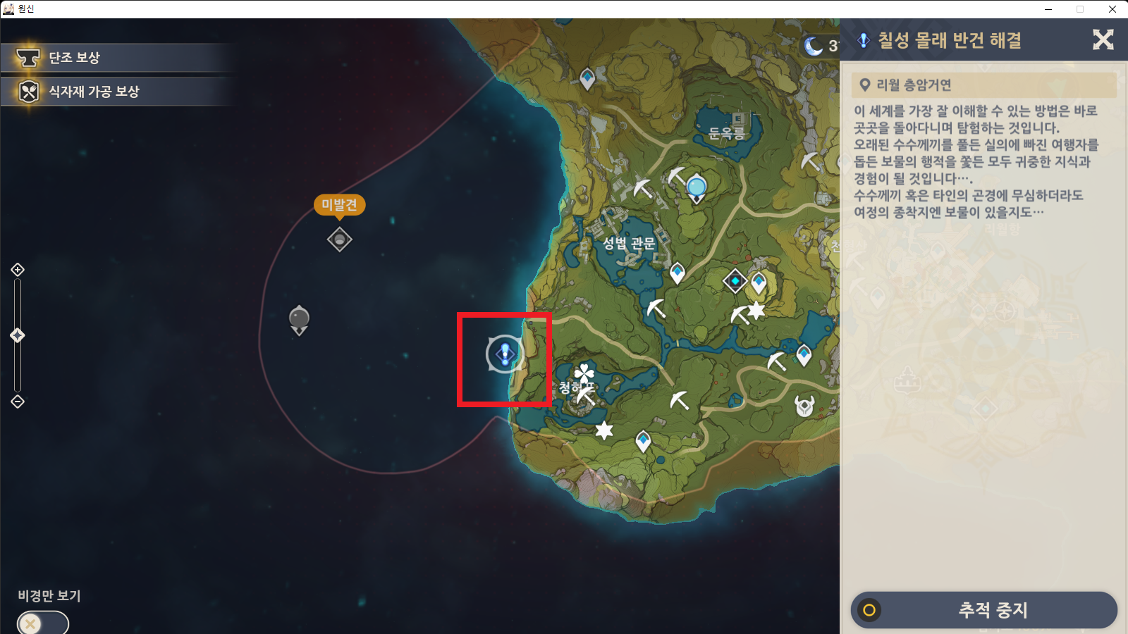 | 원신 - 층암거연 맵 개방 퀘스트 [층암거연 탐색기] 2편 (0) | 2022.04.03 |