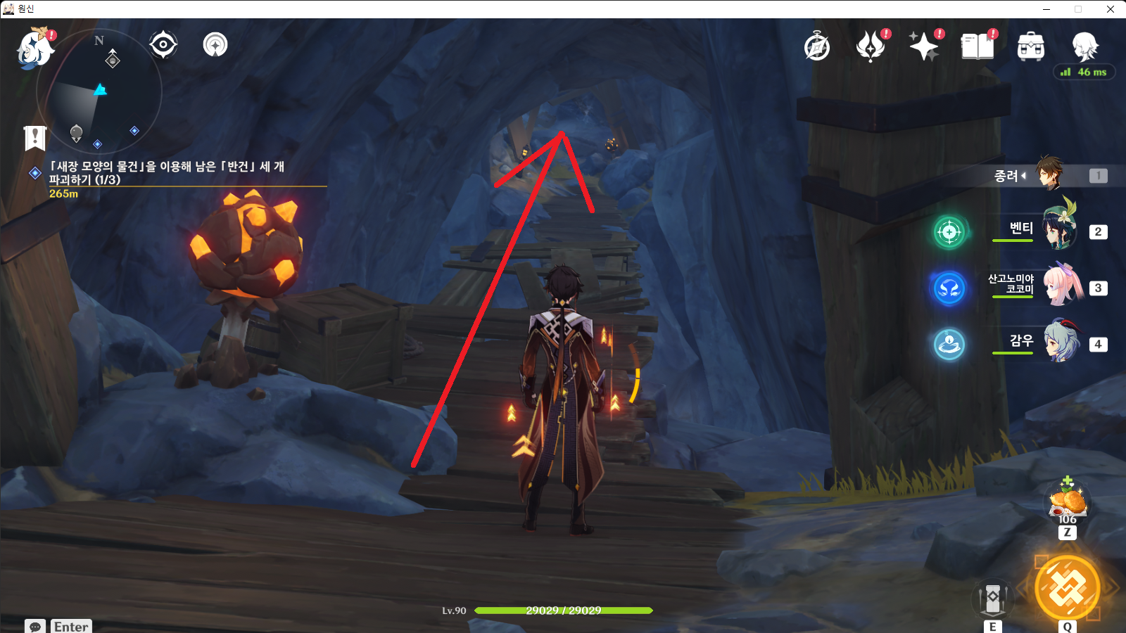 신상으로 이동하여 북서쪽의 절벽 사이로 들어간 뒤 광산 입구로 들어가 줍니다.
