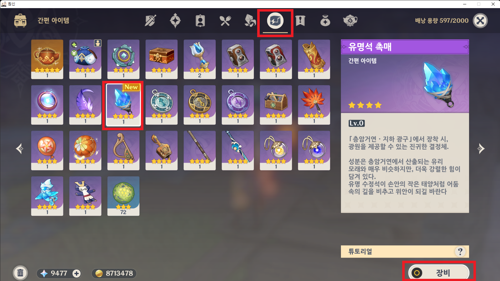 맨 처음 오두막에서 얻은 [유명석 촉매]를 강화할 수 있는 아이템입니다. 신의 눈처럼 캐릭터를 수정석에 통과시키면 획득이 가능합니다.