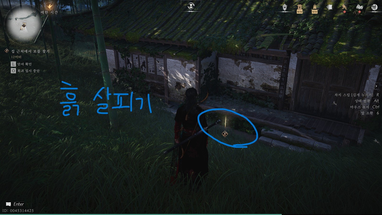 마지막 힌트인 '죽림 오두막'은 현재 있는 위치의 남쪽 워프포인트로 이동하면 바로 도착합니다. 연운 게임을 시작할 때 처음 봤던 장소이기도 하죠. 집에 도착하면 집 뒤편으로 가주세요.