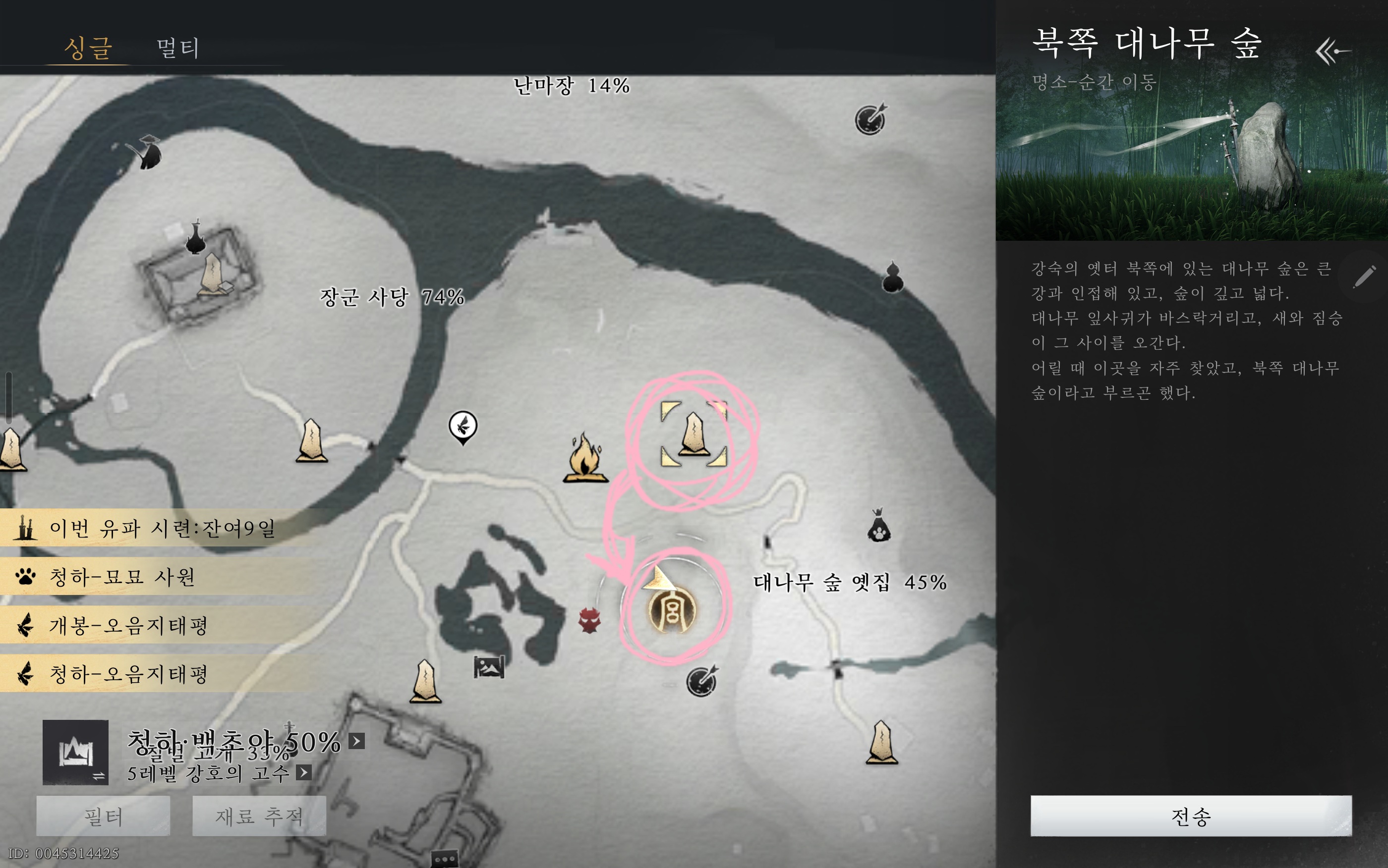 맨 처음 시작했던 '청하'지역의 '대나무 숲'근방의 워프포인트로 이동해주세요.