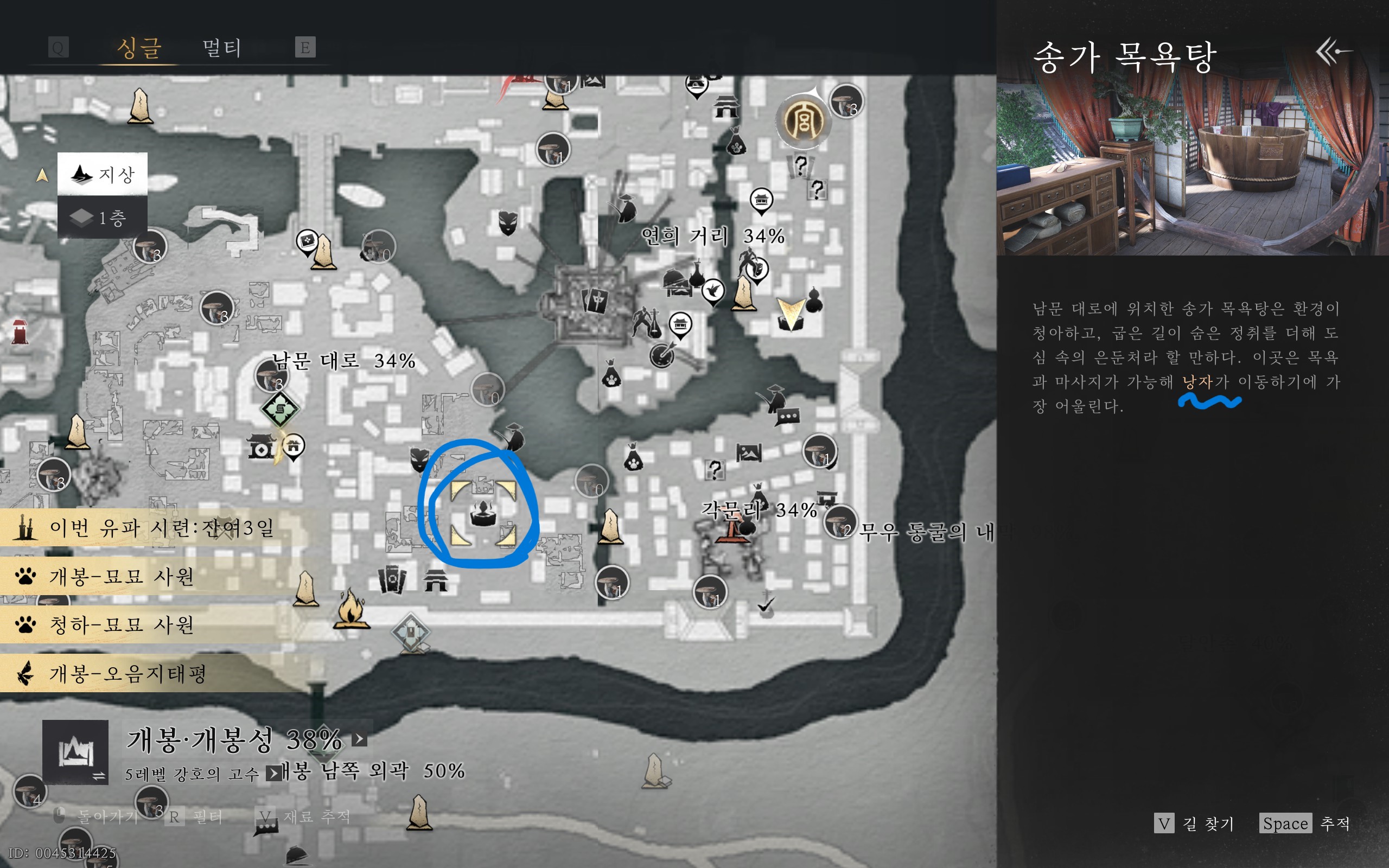참고) 여캐일경우 '송가 목욕탕'이라는 곳에서 버프를 받을 수 있다고 합니다. '송가 목욕탕'위치를 첨부하오니 참고 부탁드립니다.